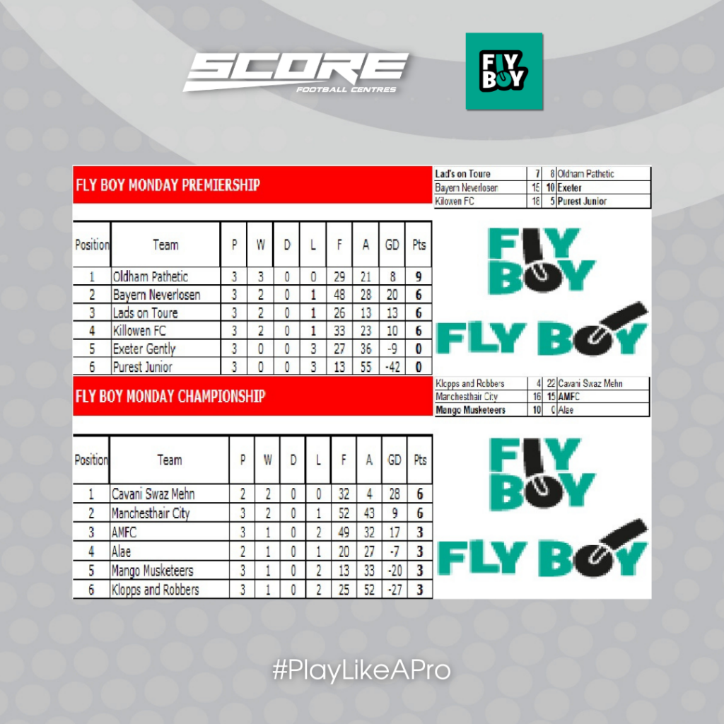 Monday League Tables & Results